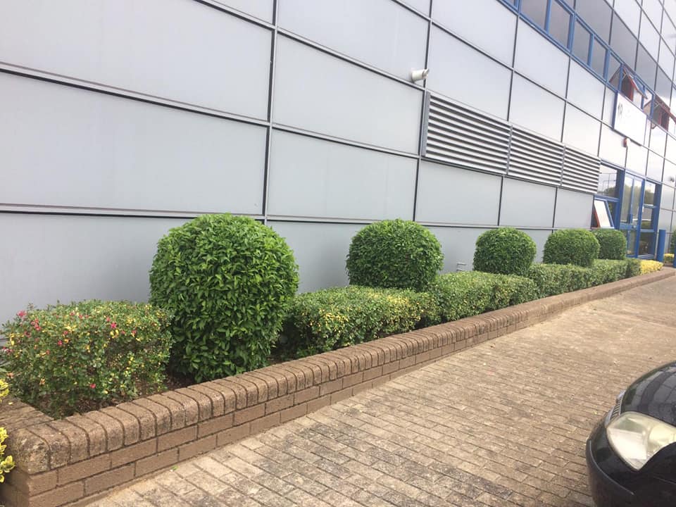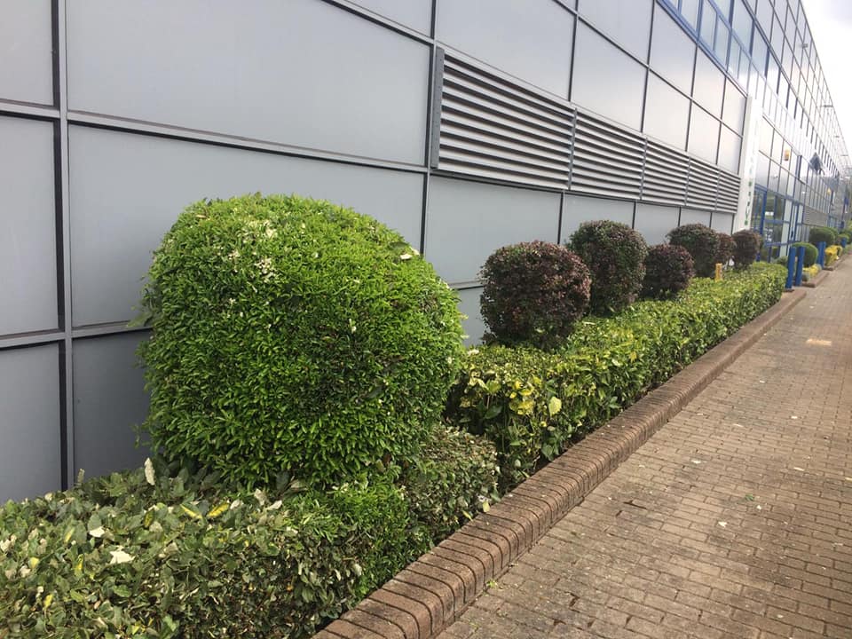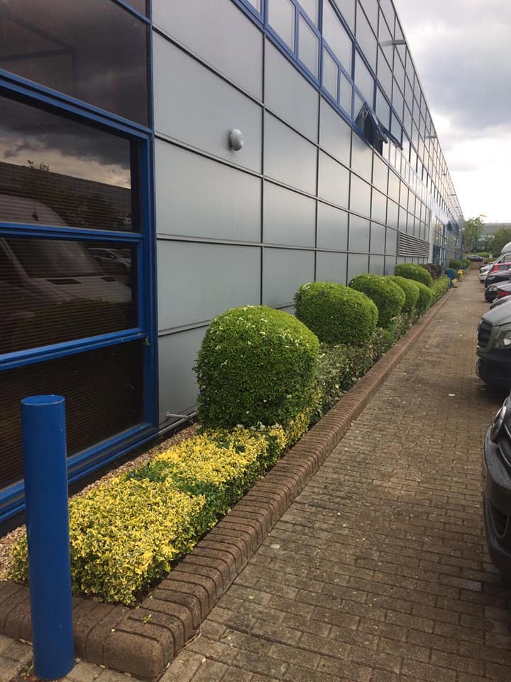 Neal Landscapes recently attended a commercial property to prune their bushes and complete a bit of landscape maintenance. Around the edges of the property, the client has a number of low-level planting along with a range of rounded bushes, which over time had become overgrown.