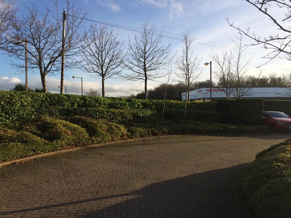 Ensuring that your commercial property remains in immaculate condition is vital for both appearance and safety. Hedges can quickly become overgrown, which proves a particular problem if nearby to a carpark, which these Conifers were. Excess or broken branches runs the risk of falling onto a parked car or causing scratches and dents.