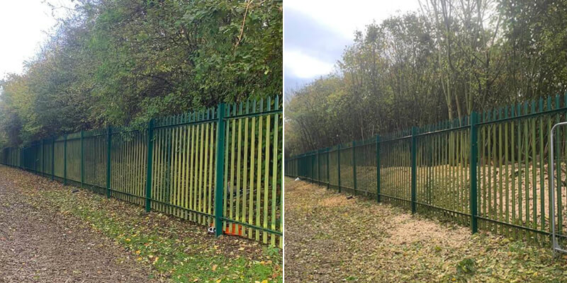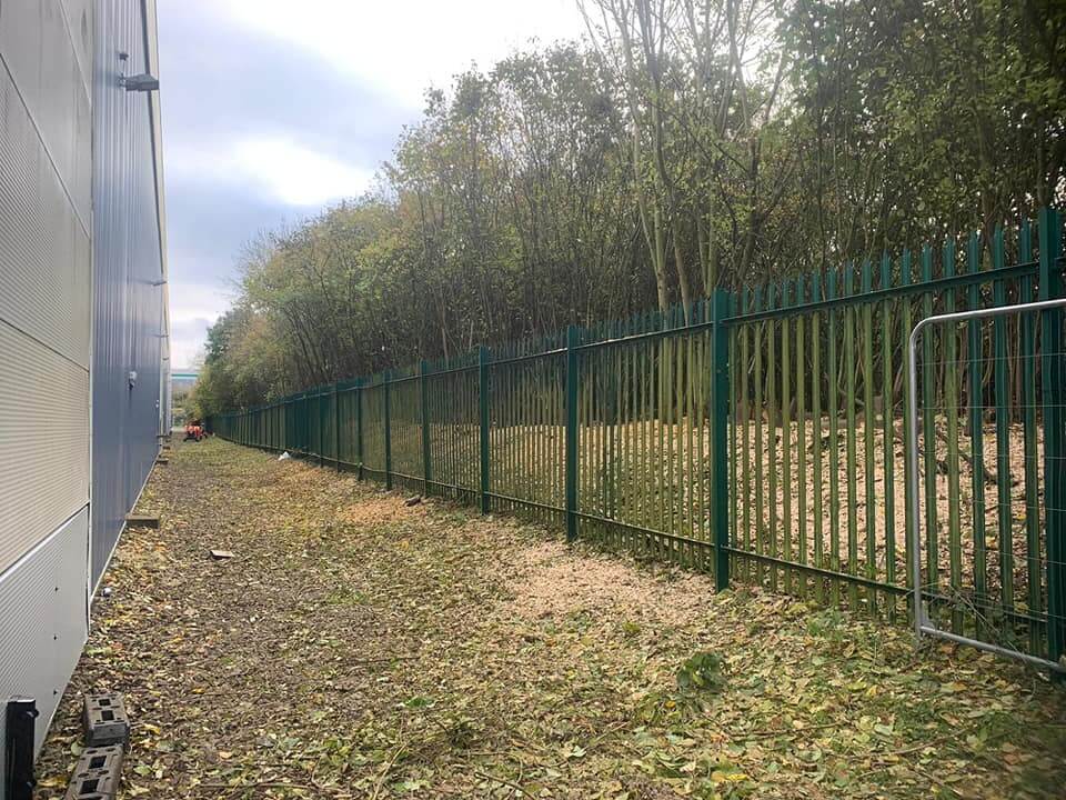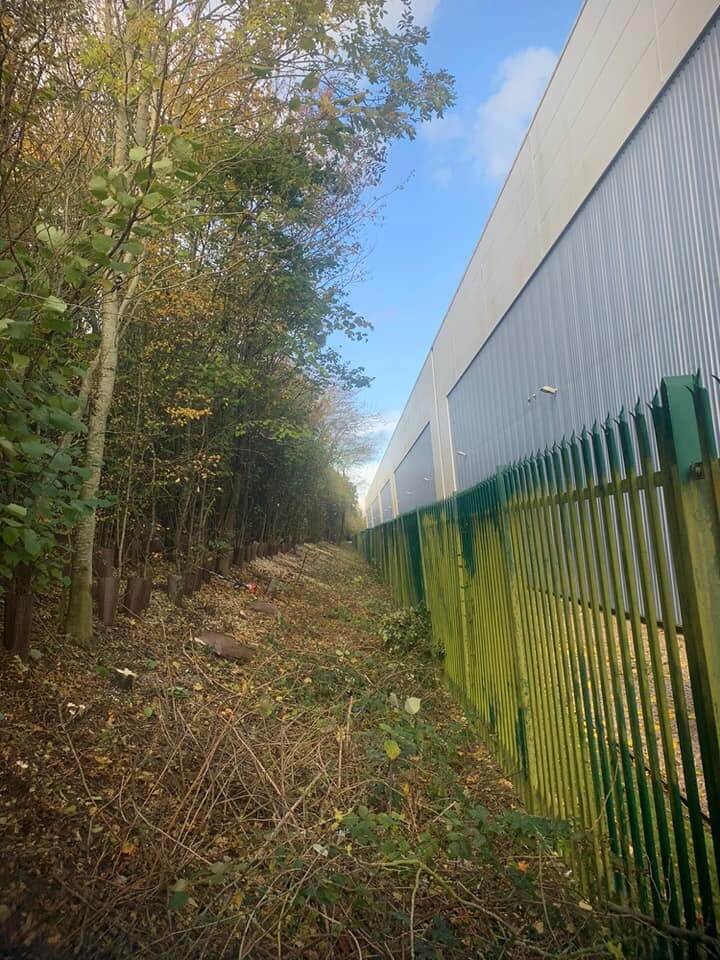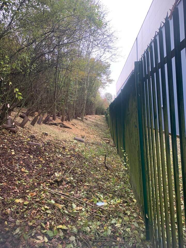 After great teamwork, the Neal Landscapes team managed to remove the trees and tidy up the line along the fence. Previously, the company had been experiencing security issues around the same cluttered area. They needed the space to be clearer for their CCTV to be working correctly. With the landscape maintenance work completed, this solved all the problems that they had been encountering and can now relax when leaving the building lot.