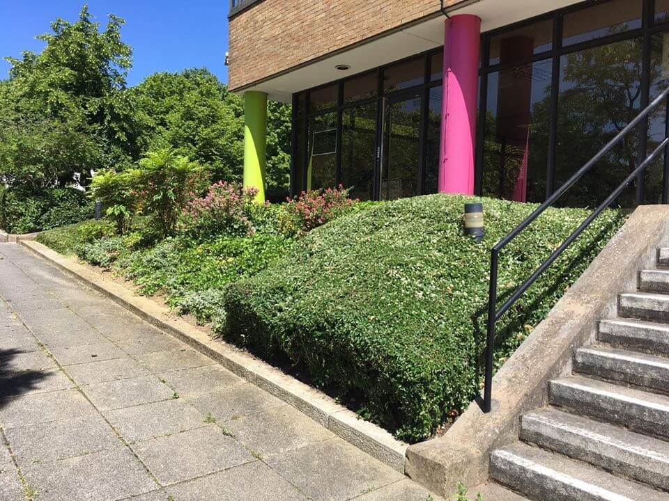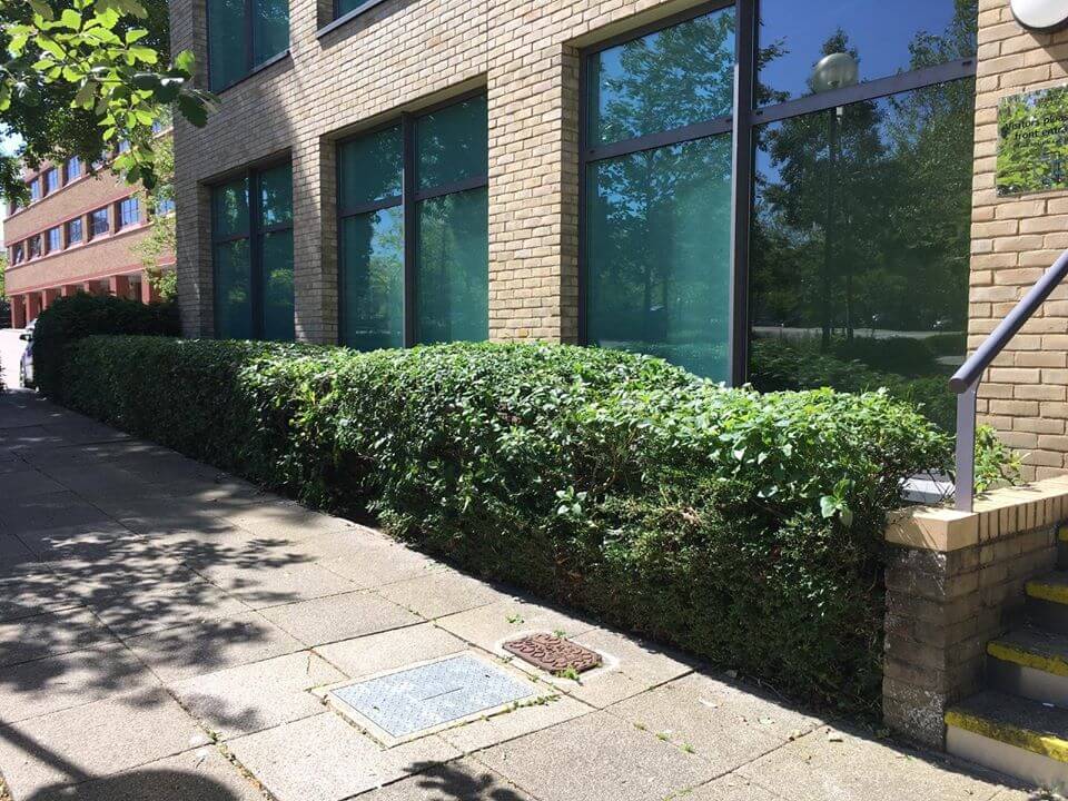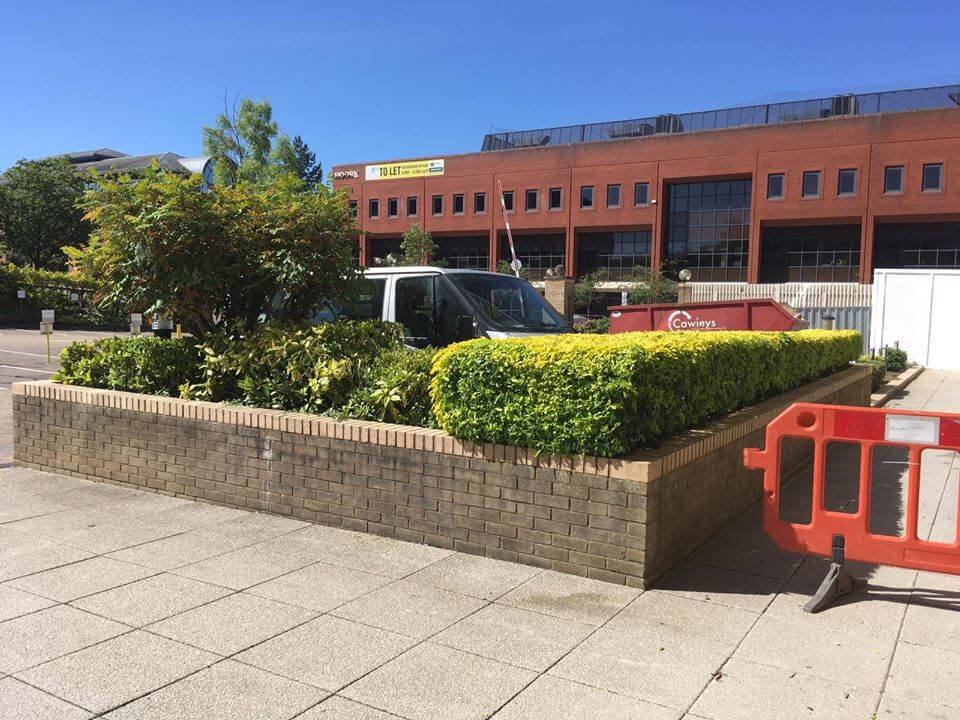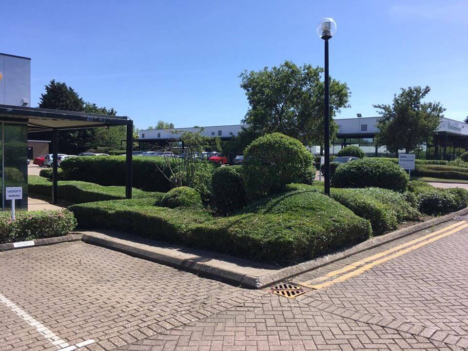 For this project, the Neal Landscapes team were asked to complete landscaping and ground maintenance of the surrounding properties in the area, ensuring that paths we cleared and the properties landscape looked welcoming and presentable. When the team arrived, the bushes were covering the majority of the lower floor windows and had lost their shape; this not only looks scruffy, but also minimises the amount of natural light entering the building. The team immediately began by shaping the bushes and trees to provide a clean-cut and professional finish to the landscape. To add a bit of character and definition to the property, the team also created a step-like feature in the bushes as a unique design to make the property stand out. The landscape now looks clean, and the client is able to enjoy a safe environment as employees slowly return back to work in the weeks to come.