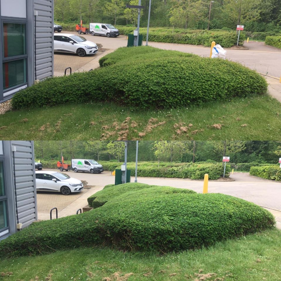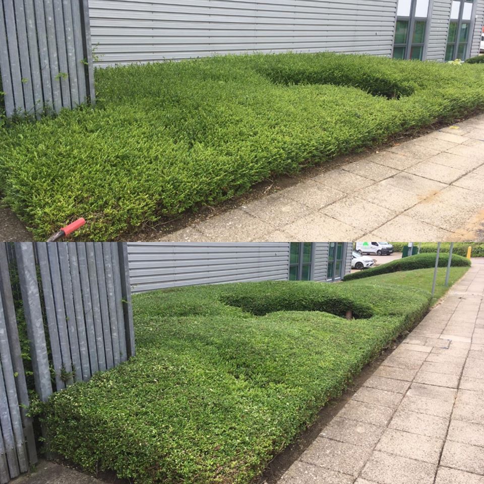 With this in mind, we completed our projects in April with a visit to one of our clients based in Linford Wood, Milton Keynes, who required landscape maintenance. While their premises did not look unappealing, the hedges around their property had started to outgrow. This meant that it was vital that they were cut down and shaped in order to prevent vegetation from obstructing car parks, footpaths, drains and lighting. While it may not seem like an immediate danger, failing to control the growth of greenery around your property can risk the overall health and safety of the building. Outgrown hedges can cause blind spots in car parks, tripping hazards on pathways and cover lighting, making it tricky for individuals to make their way across the site in the evening.