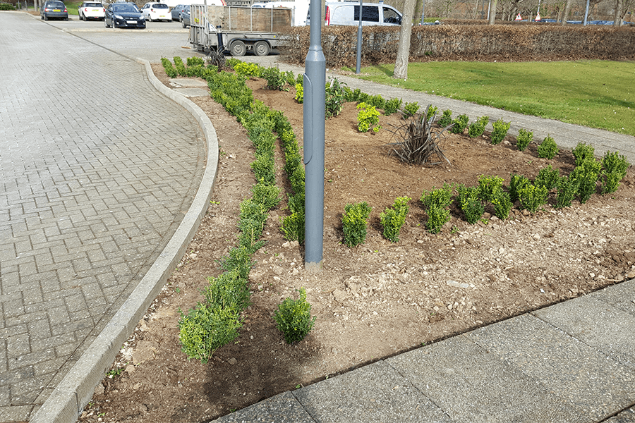 Another planting scheme that we at Neal Landscapes carried out at one of our sites in Central Milton Keynes. The areas had just bark on them that was previously done by a different contractor. The client wanted a change, they wanted to have more of an impact when driving into the business park.