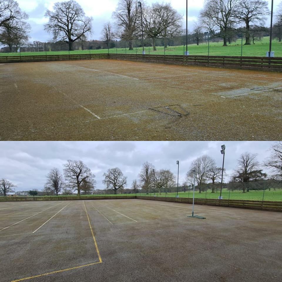 Moss sweeping is not designed to remove 100% of the moss on paving, but it does make a significant difference on not only the appearance of sites but also safety. Especially during the colder months, the regular rainfall can cause the moss to become incredibly slippery, even more so if the water is to freeze. This causes a considerable hazard, particularly on the grounds that are used to play sports, which is why it was important for us to remove as much moss as possible before the students returned full time.