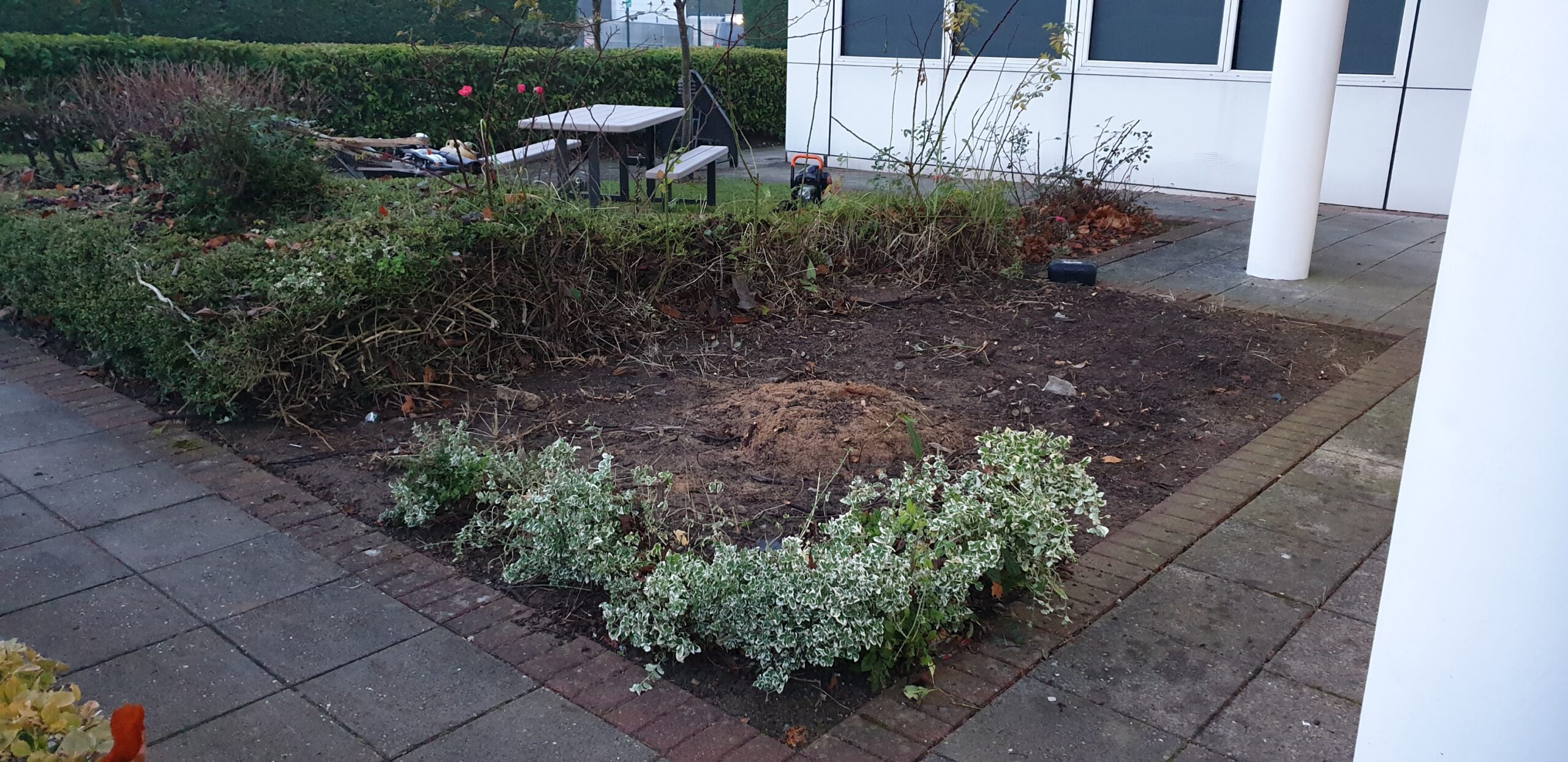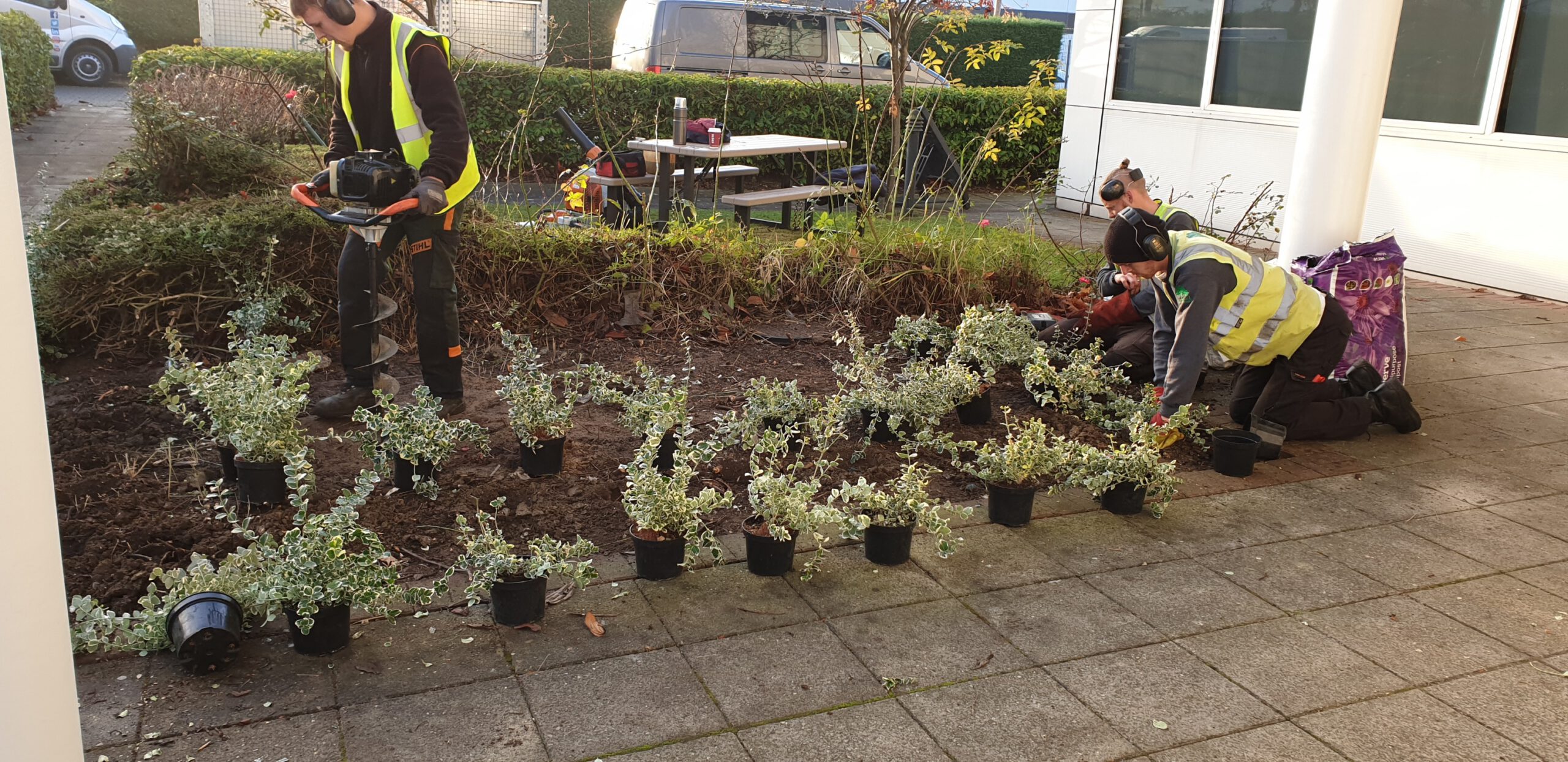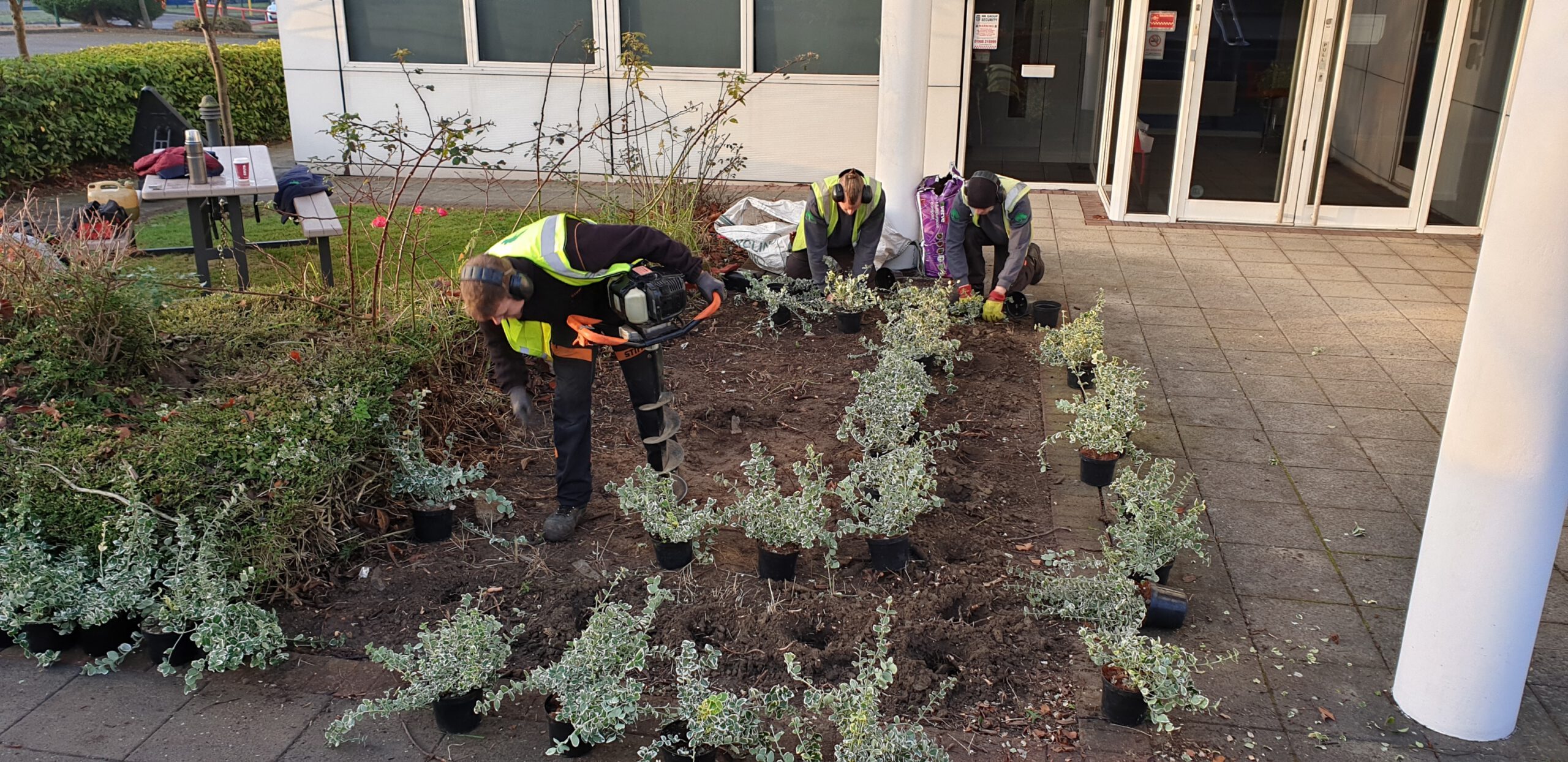 After assessing the situation, we concluded that the plants were extremely old and had been severely damaged. We felt that there were only two solutions to resolve the issue; either to treat the shrubs with insecticide or to remove all damaged plants, and replace each with a different planting scheme, but keeping the previous colour theme.