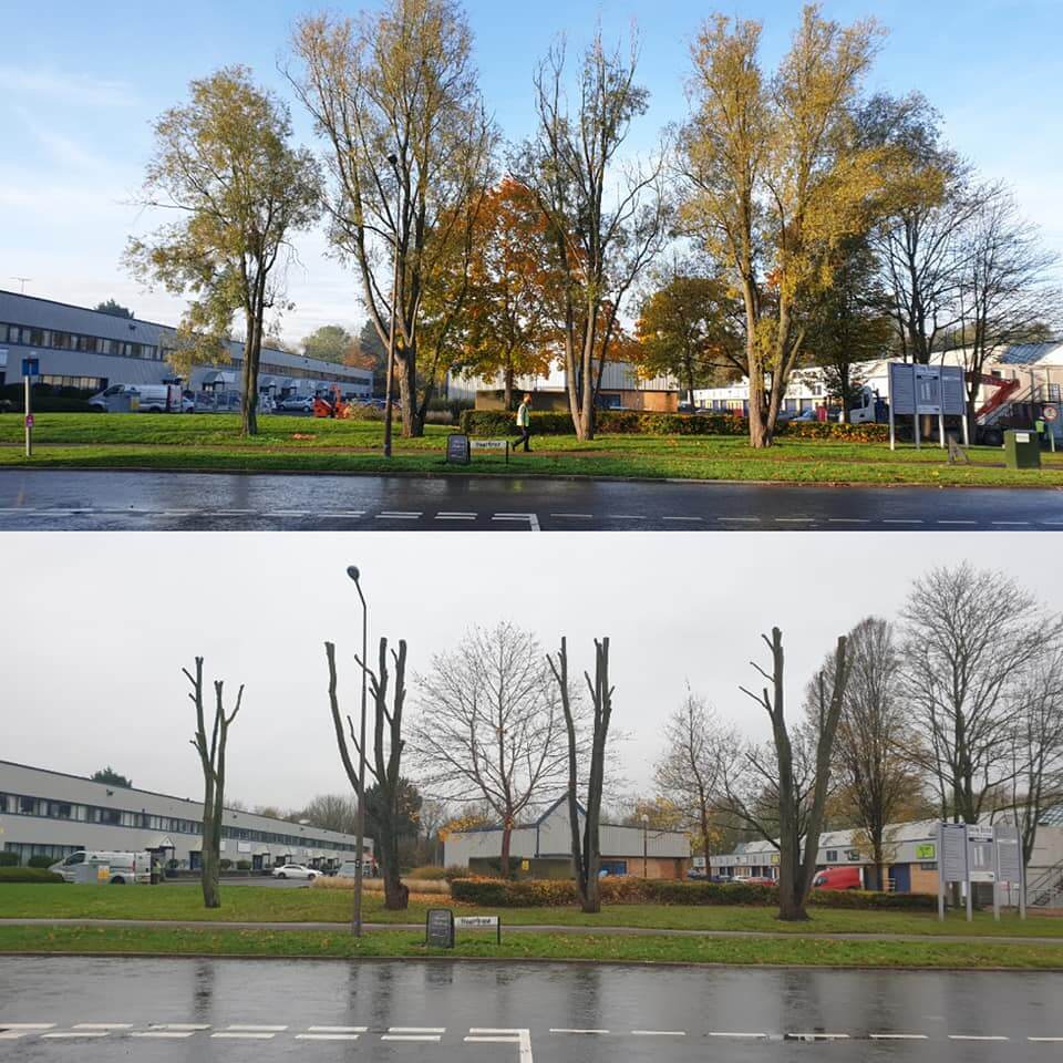 We determined that the correct service to follow through with was pollarding. To rejuvenate the willow trees, we cut off the tree stems, removed any spindly branches and thinned out the tree, which initiates regrowth to bring the tree back to life.