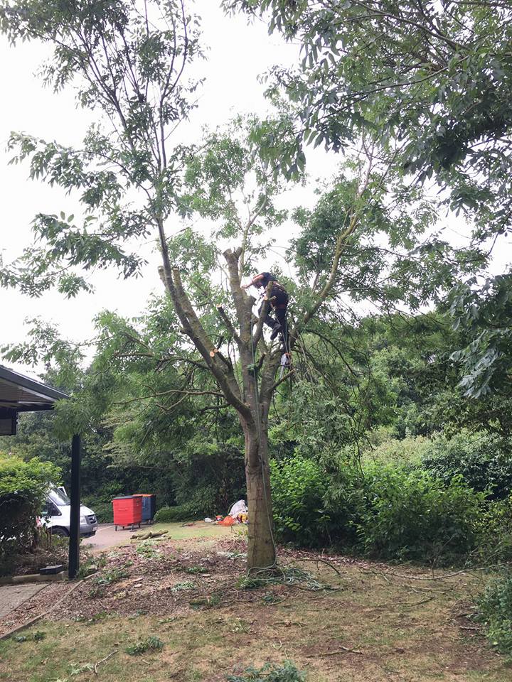 Our client in Milton Keynes has some issues with drainage on their site. Unfortunately this resulted in the tree needing to be sectionally dismantled to allow other contractors to come in a resolve the situation with the drainage as the pipes were located directly under the tree.